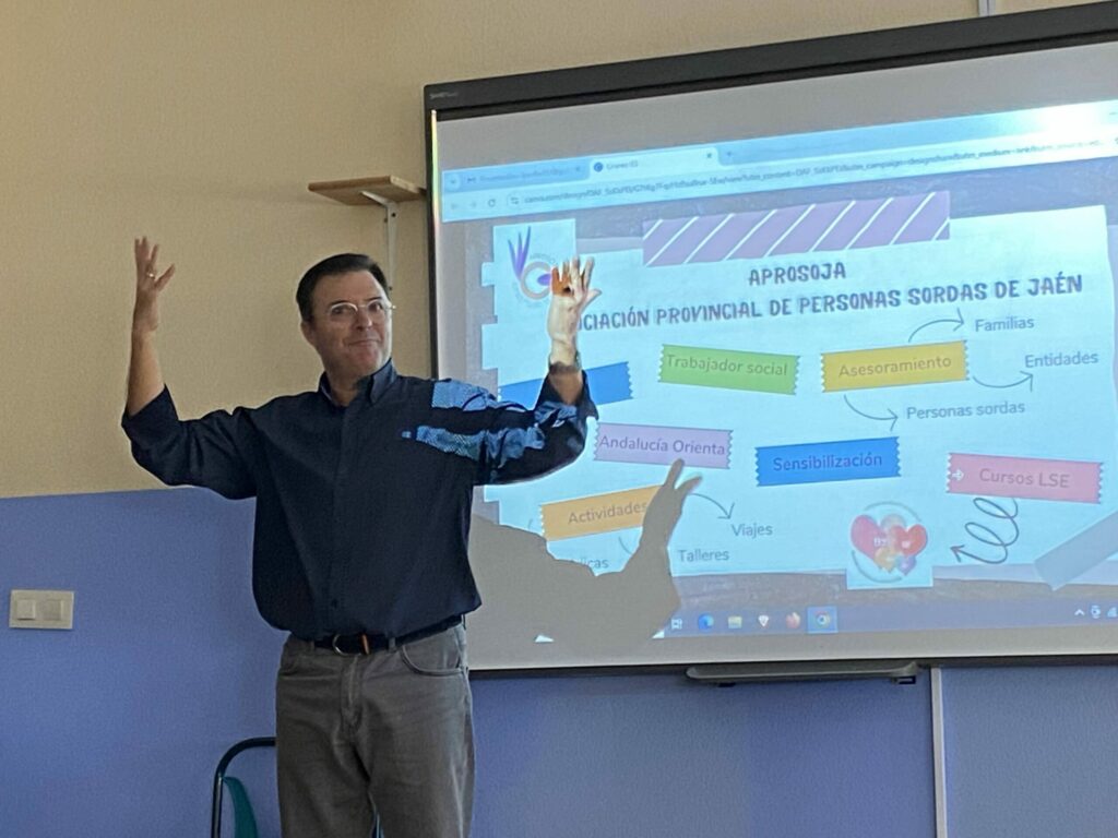 Técnicos/as de la Asociación Provincial de Personas Sordas de Jaén dieron una charla-taller sobre la realidad que viven día a día las personas sordas. El alumnado de 1º del Ciclo Formativo de Gestión Administrativa aprendió cómo comunicarse con personas sordas.