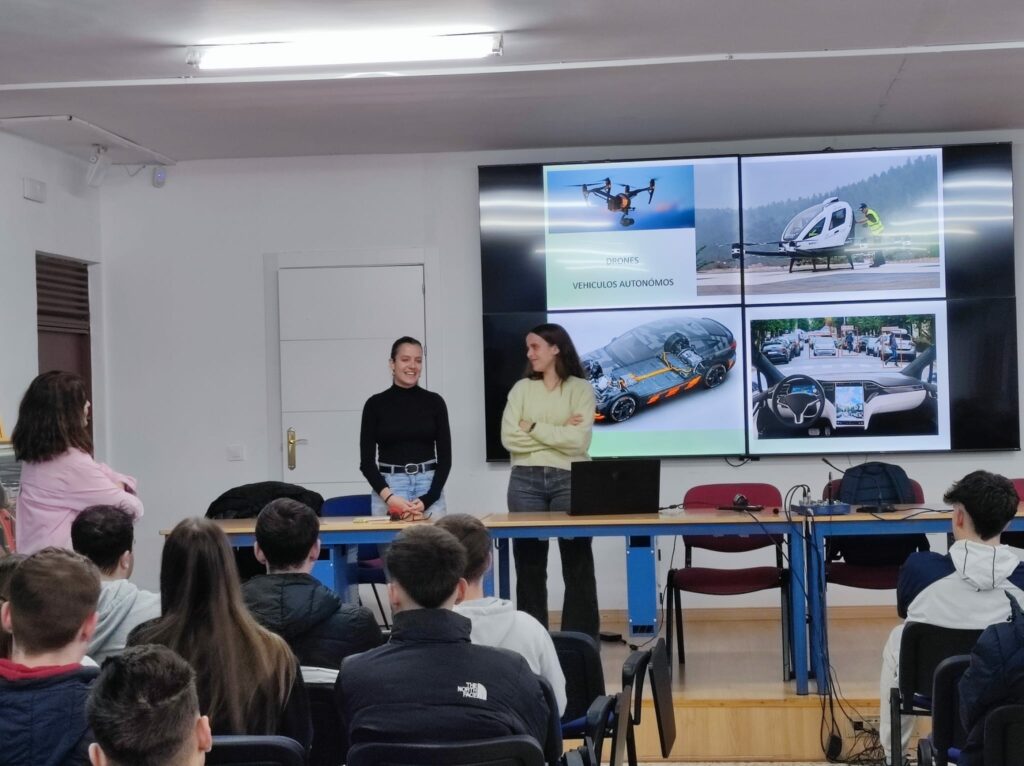 El pasado 12 de marzo, el alumnado de 2º Bachillerato y de 1ºCFGS de LACC y de DFM, disfrutó de la charla «Ingeniería, una apuesta de futuro», impartida por Ángeles Verdejo (Dra Ingeniera Industrial de la UJA), acompañada de las alumnas de Ingeniería Elena Español e Isabel García.